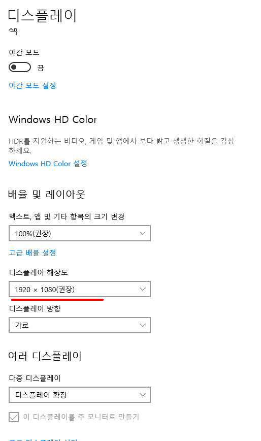 2. 해상도 최적화 (바탕화면 -> 우클릭 -> 화면해상도U) / 모니터 HZ 업그레이드(하드웨어)